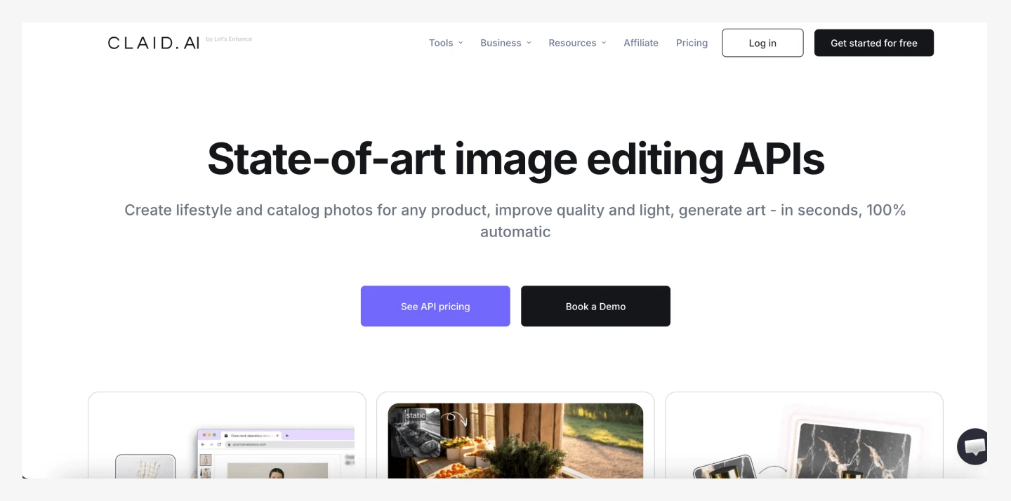 What it does best: Claid AI's Image Editing API automates photo optimization and processing at scale. The API focuses on enhancement-first workflows and is best for enterprise technical or operations teams working with large batches of imagery.