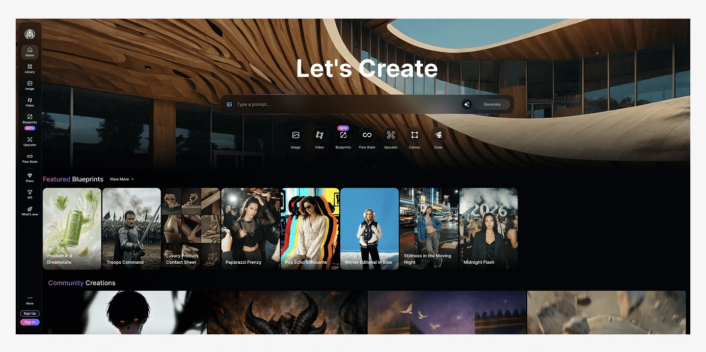 Performance: The interface is clean and intuitive, though it takes a minute to navigate if you’re new to creating images with AI. It also has a canvas that displays generations with each model and you can count on it to generate high-quality images.