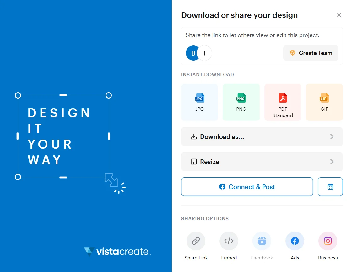 VistaCreate also offers extensive branding and customization features that are ideal for teams and creators who want access to as many styles and templates as possible.
