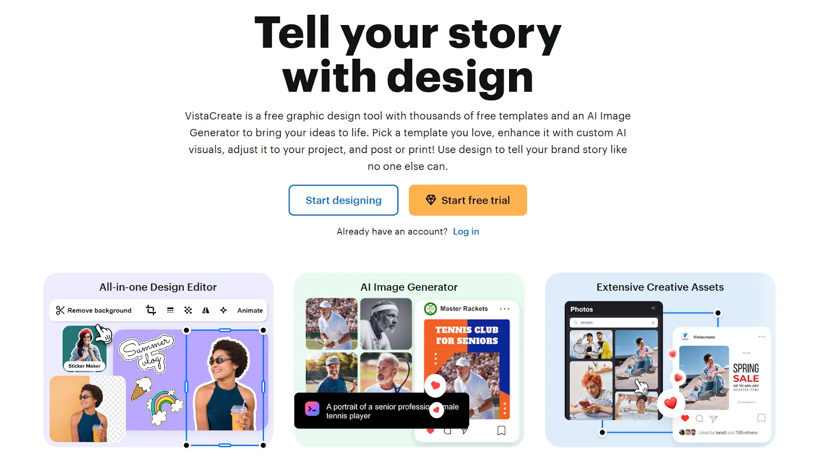 VistaCreate is the best solution for creators that want a large library of templates and stock assets. It’s not built for e-commerce product photos like Photoroom.