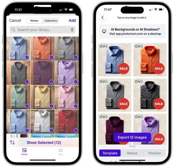Heavier emphasis on desktop workflows as the the mobile app is less refined that Photoroom’s