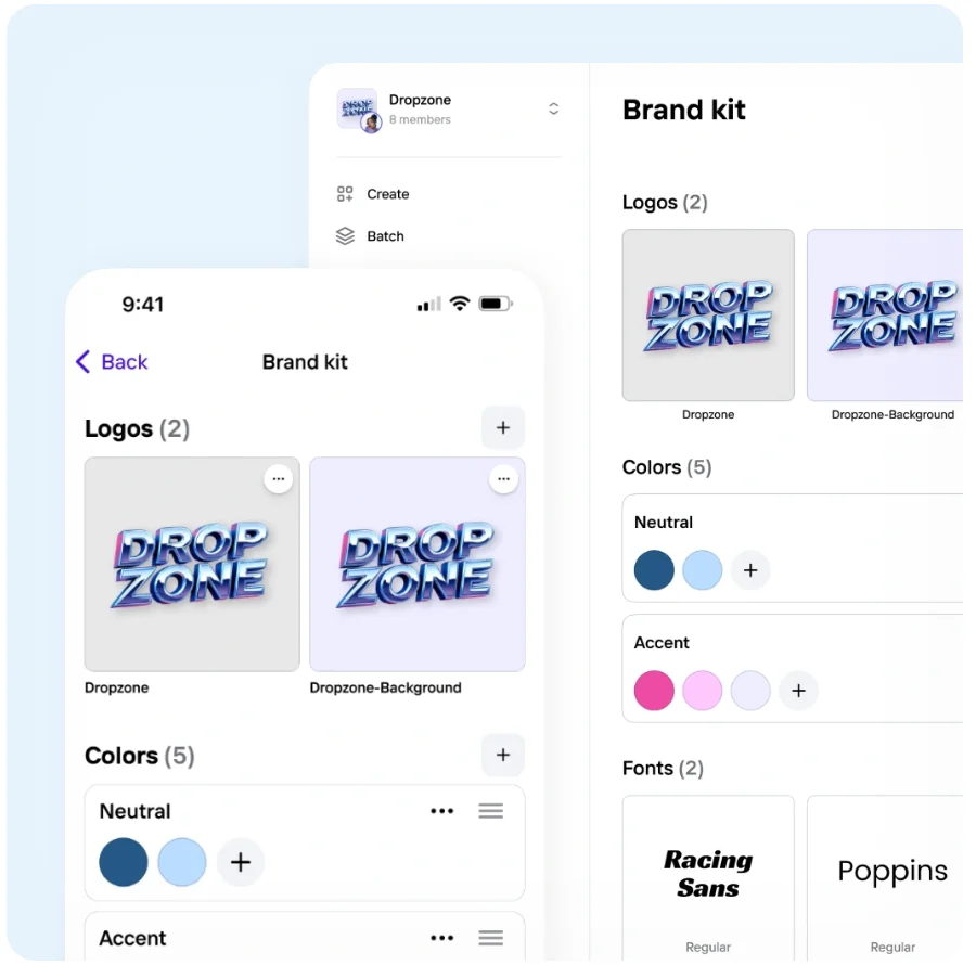 A built-in Brand Kit to apply your colors and fonts consistently.