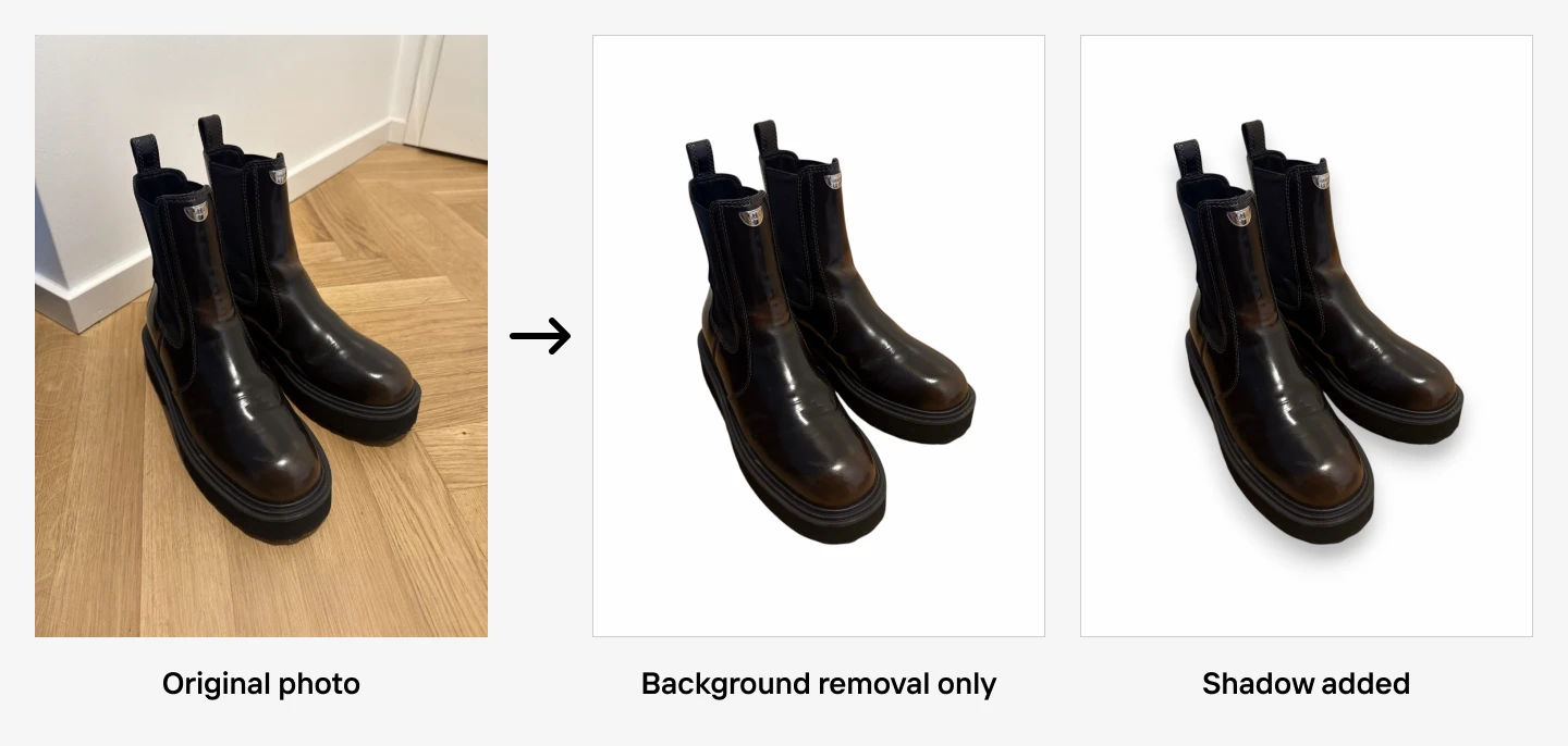 The insight confirmed what Photoroom has seen across other secondhand marketplaces: adding shadows in product photos is a distinctive way to bridge the gap between "edited photo" and "trustworthy product image," especially in AI-powered product photography. Background removal gets the clutter out of the way. Shadows make the product feel like something you could pick up.