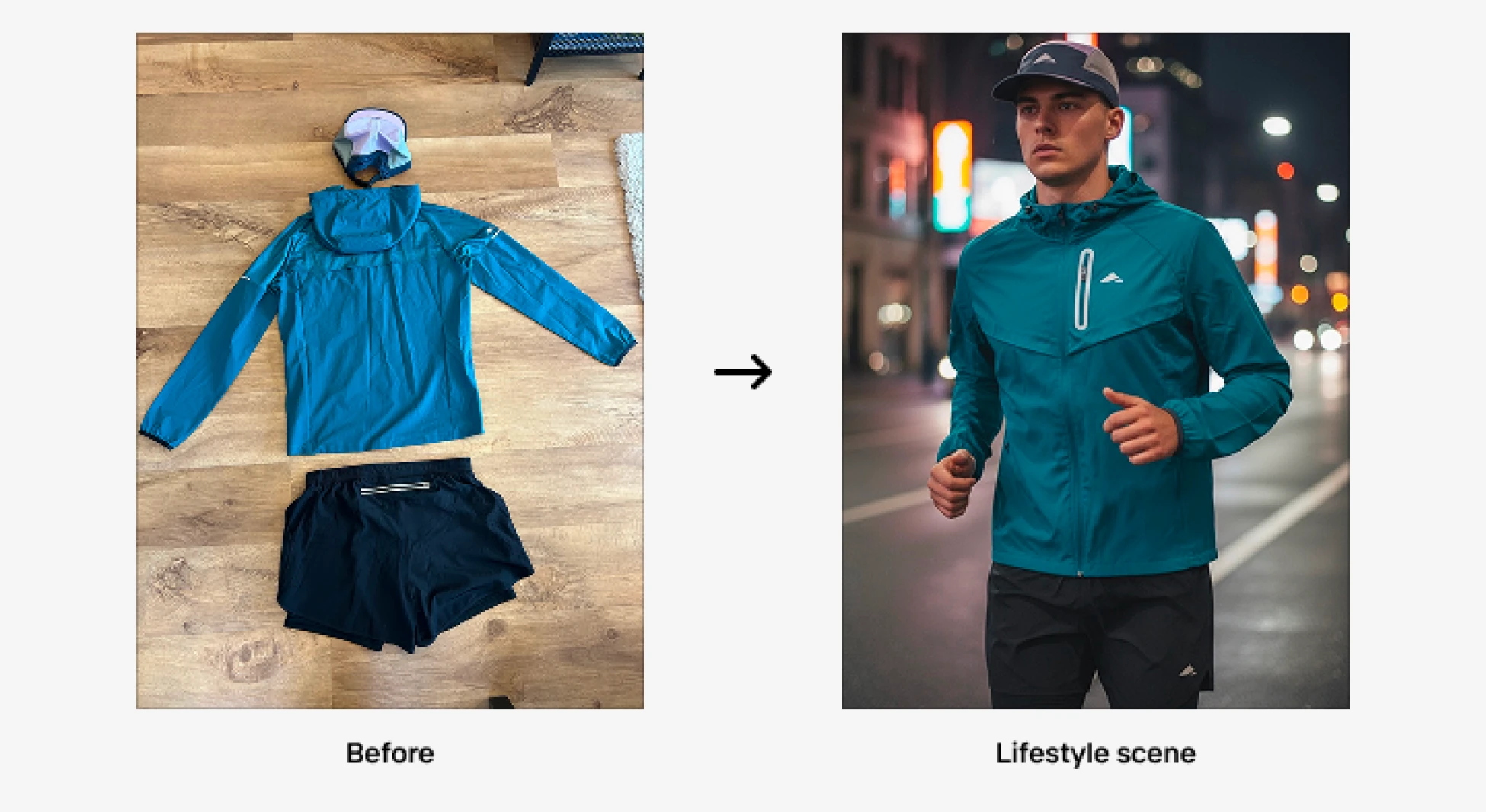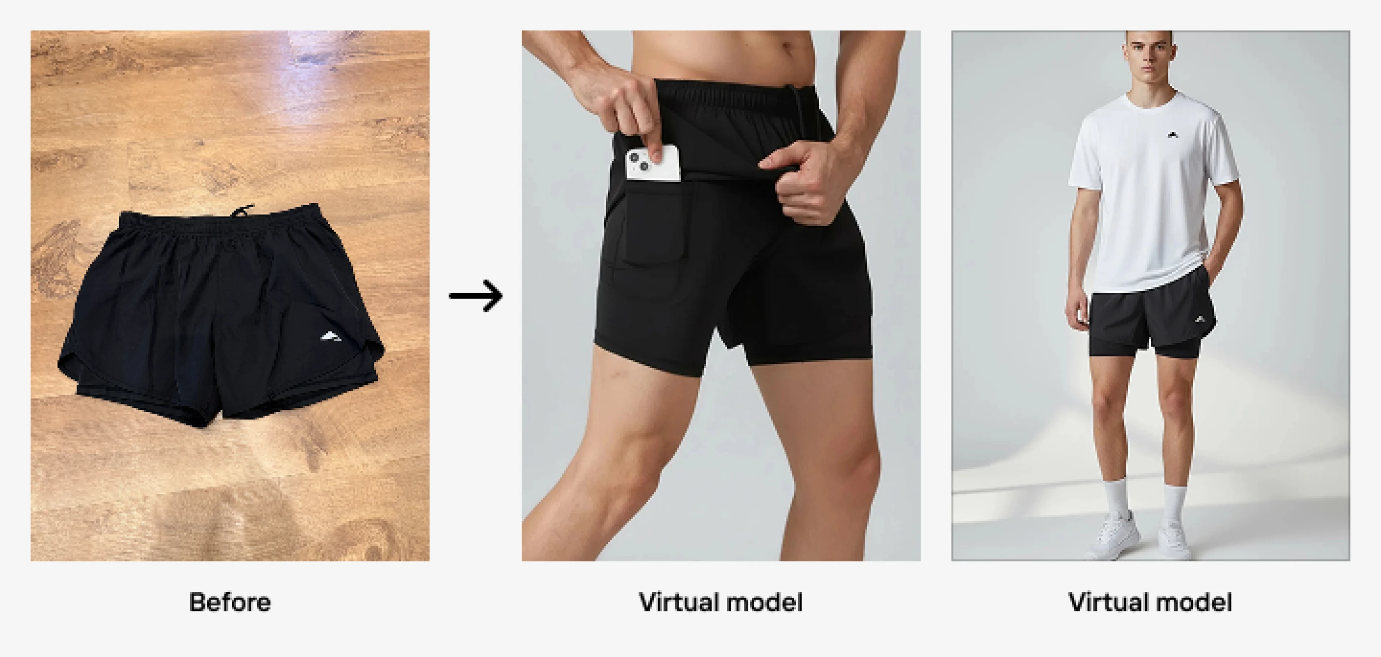 One early breakthrough came with Layer's two-in-one running shorts, featuring an inner lining and a phone pocket; details that had been nearly impossible to capture in traditional photoshoots. "In Photoroom, I did it in about five minutes, and it looked perfect," Dan says.