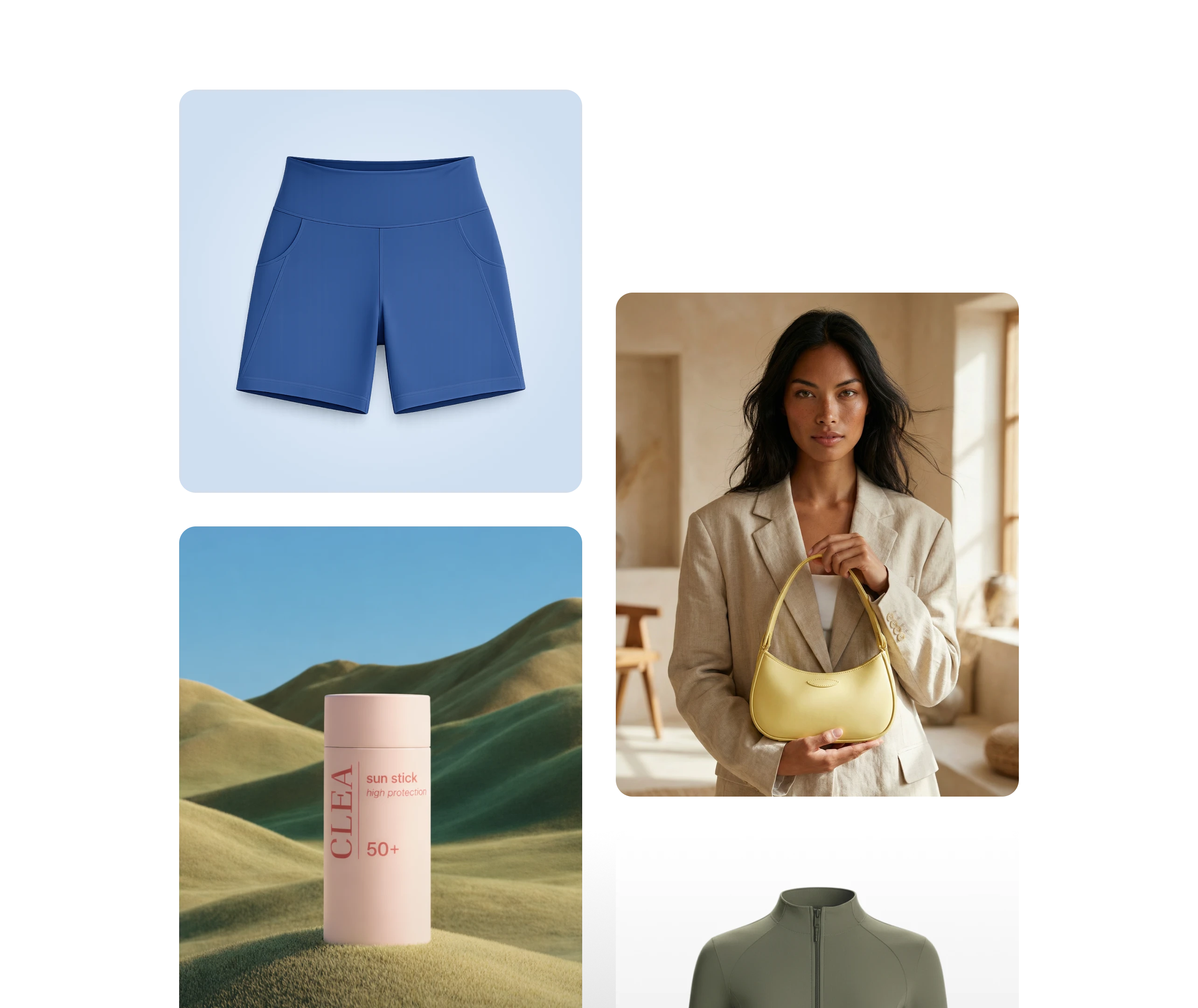 Cuando estés en Photoroom, elige cómo quieres que se vean las imágenes de tus productos. Crea fondos blancos y limpios para tus páginas de producto o usa la IA para generar escenas realistas que vayan con tu marca.