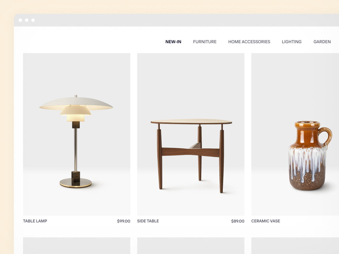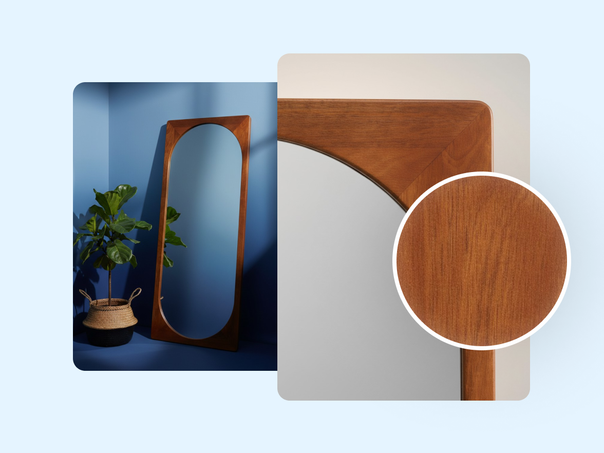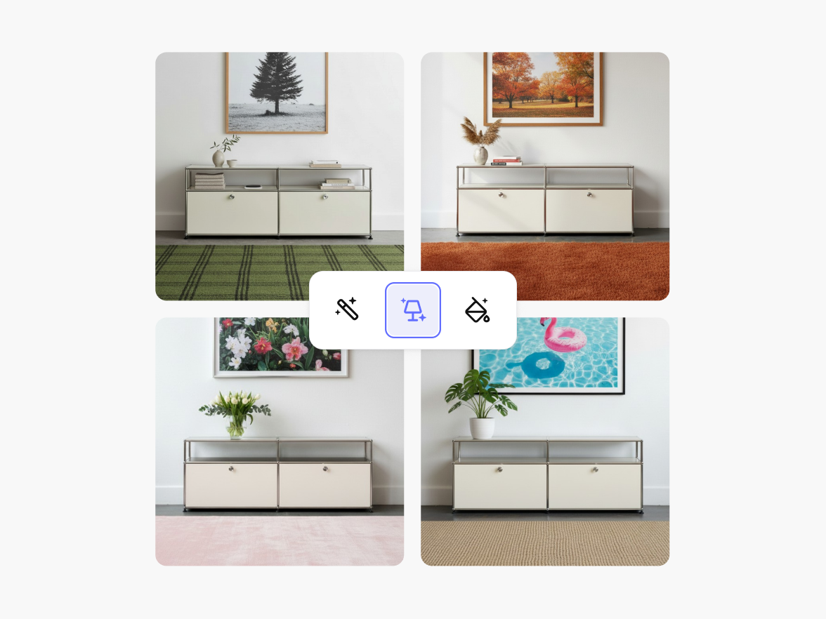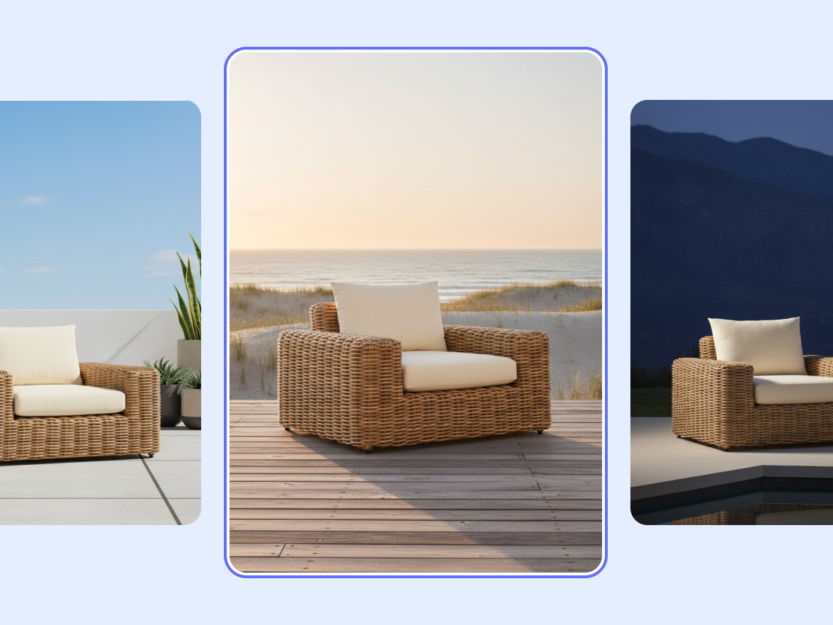 Cuéntanos qué quieres lograr. Photoroom puede colocar tus muebles en escenarios reales para que obtengas imágenes auténticas y alineadas con tu marca, algo que ninguna foto de stock puede igualar.