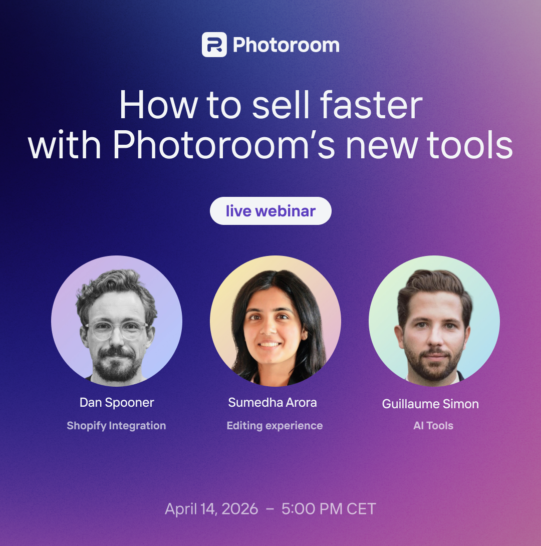 Upcoming webinarHow to sell faster with Photoroom's new tools