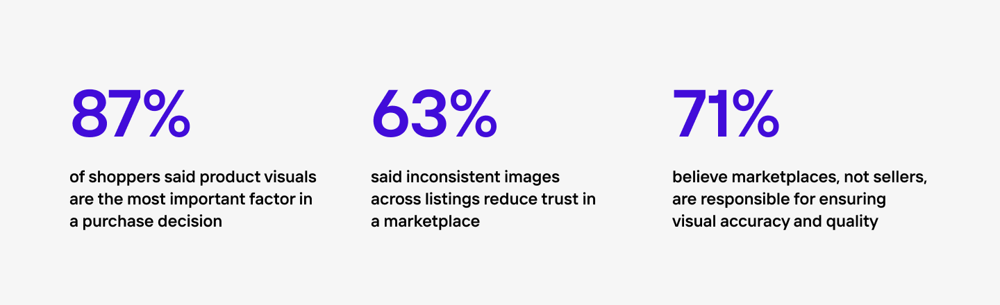 And while operators are adapting internally, consumers are adapting externally. In a Photoroom-commissioned consumer survey of 2,000 UK respondents, 87% of shoppers said product visuals are the most important factor in a purchase decision, and 63% said inconsistent images across listings reduce trust in a marketplace. Another 71% believe marketplaces, not sellers, are responsible for ensuring visual accuracy and quality.