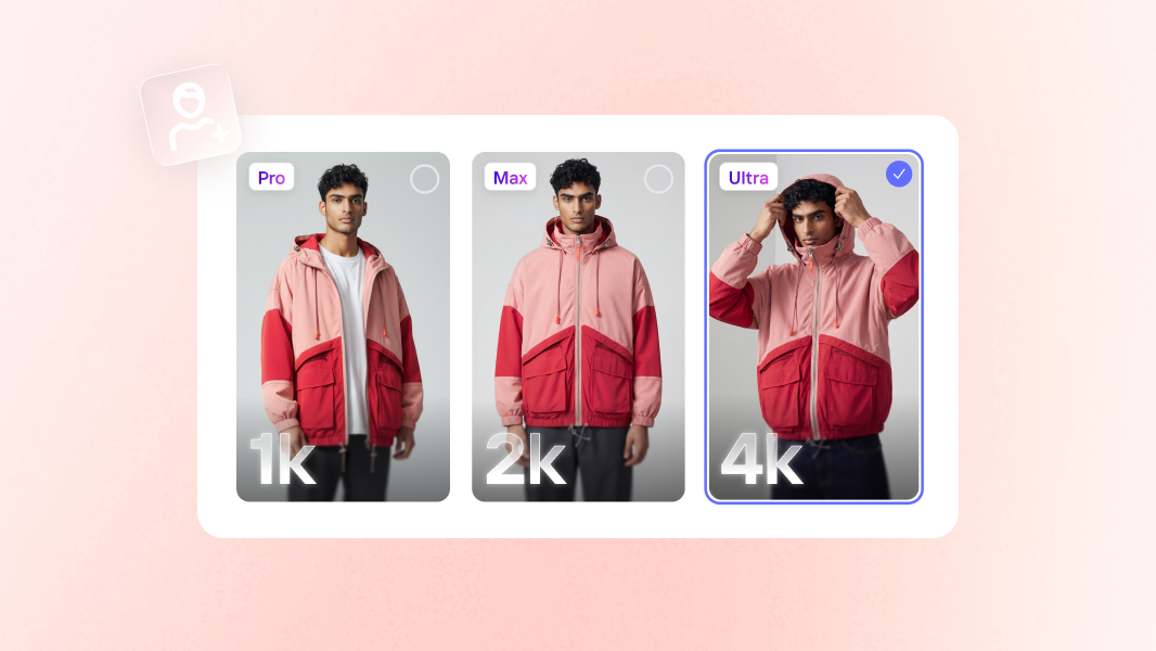Introducing higher quality for Virtual Model, now available in three tiers: Standard (1K), Advanced (2K) – for Max users, and Premium (4K) – for Ultra users. Our highest-resolution models meet marketplace and print requirements while showcasing your brand at its best. With enhanced realism, lifelike skin, improved textures and lighting, and precise preservation of product details like logos and patterns, you get sharper accuracy, greater control over quality, and higher-performing visuals that build brand trust and drive conversions.