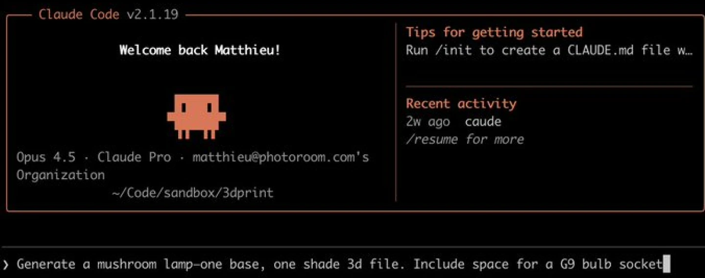 Claude generated a Python script that outputs the STL file, ready to print. In 15 iterations of just prompting, I got a fully developed product with embedded texts, bulb sockets, everything. The wild part is that I didn't touch any CAD software. Claude knows the exact dimensions of a G9 bulb socket. It executed perfectly. The shade and base plug into each other seamlessly.