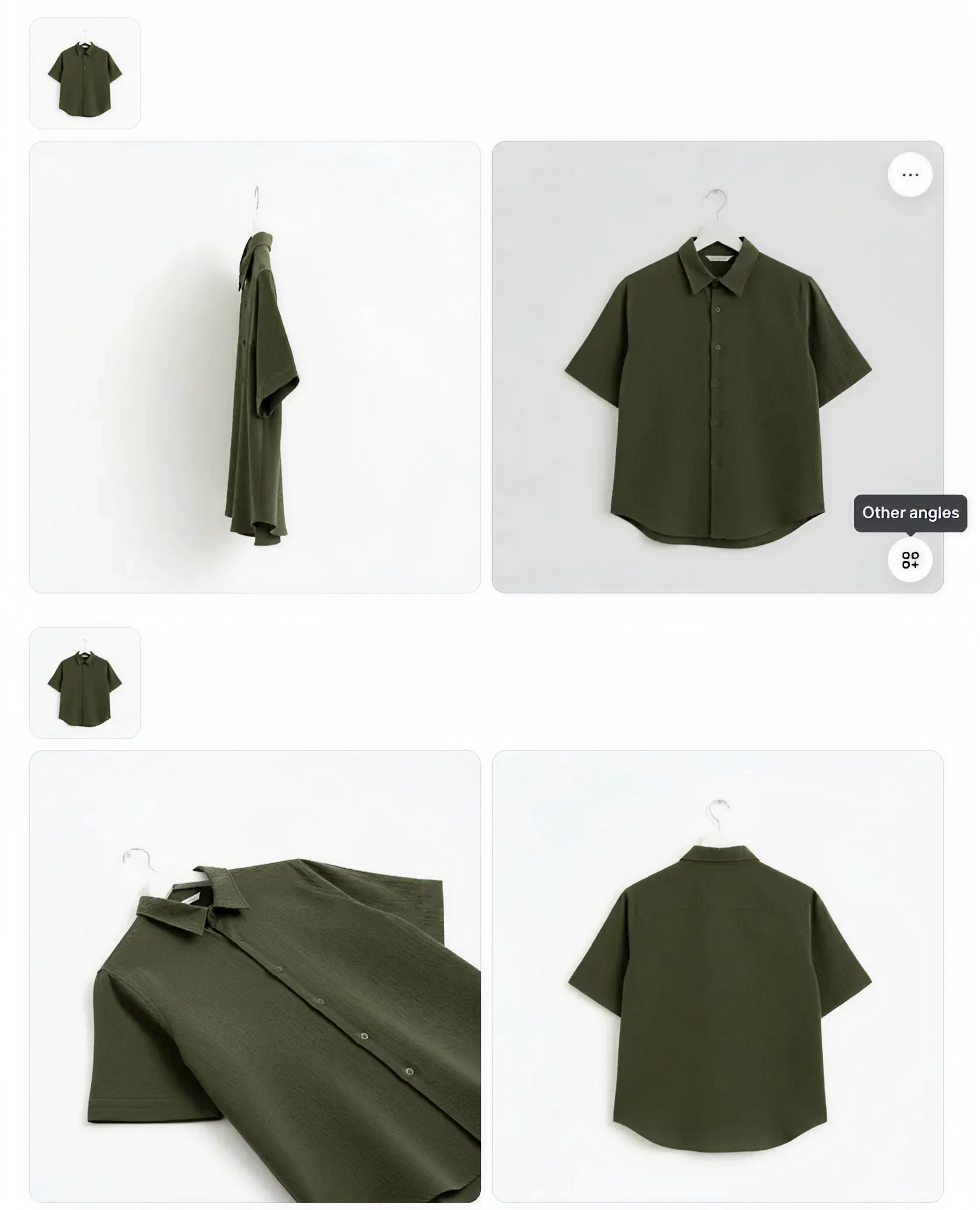 Online shoppers can't touch your products—but they can see them from every angle. More Angles instantly generates alternative views for any AI image, giving customers the front, back, side, and detail shots they need to buy with confidence. The impact? Sellers report 30-94% higher conversions and fewer returns with multi-angle listings. No reshoot required, just seconds to create a complete gallery.