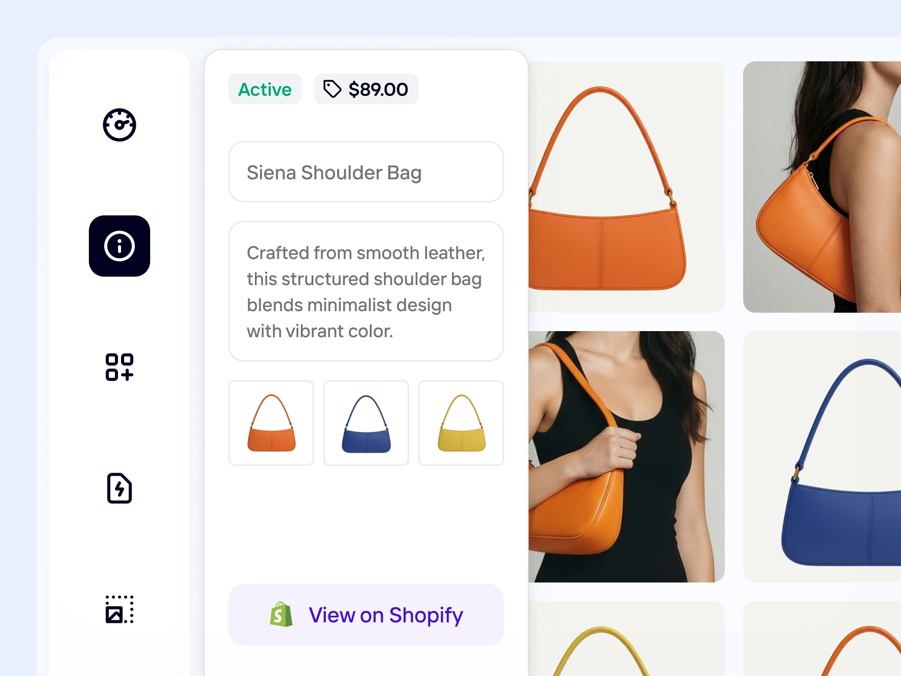 A Shopify product listing is a product entry in a Shopify store that includes images, product information, variants (such as color or size), and SEO elements like titles and descriptions. It is the unit shoppers see on product pages and category pages.