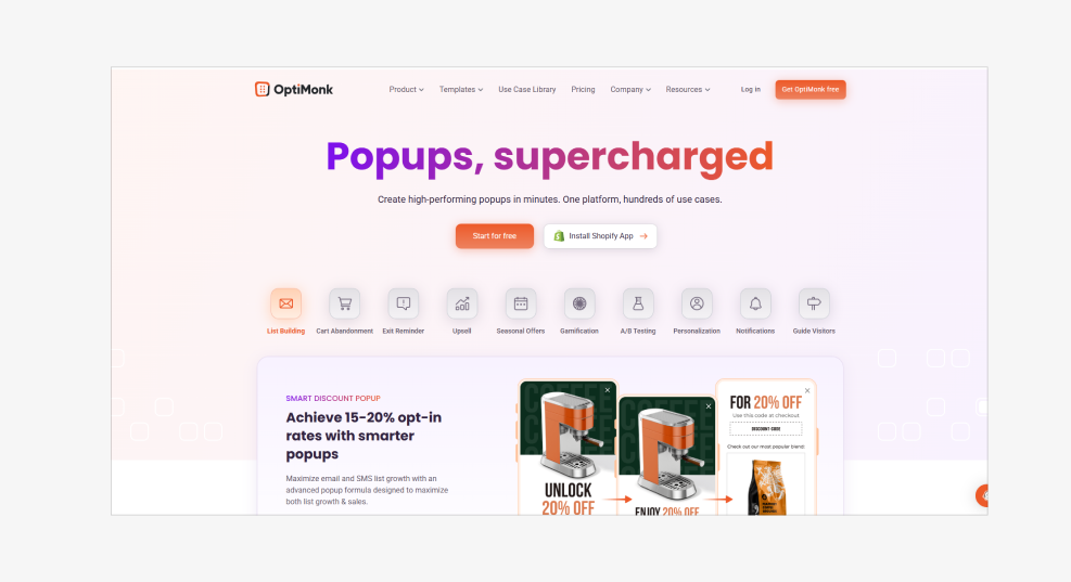 What it does best: OptiMonk gives you high-converting popups and on-site personalization tools that grow your email and SMS lists while pushing hesitant visitors to buy.