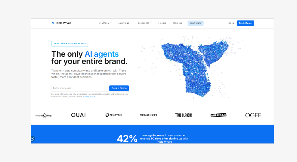 What it does best: Triple Whale consolidates all your scattered ecommerce data so you can make smarter marketing decisions. Their platform shows you which campaigns, channels, and products are driving profitable growth.