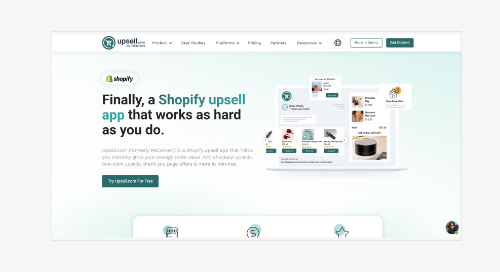 What it does best: Upsell boosts AOV by turning your thank-you page into a conversion opportunity with one-click upsells, cross-sells, and post-purchase offers that capture additional sales after checkout is complete.