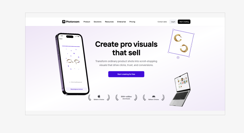 Photoroom is the best solution for AI product photography: it turns raw product photos into conversion-ready visuals in seconds, giving you studio-quality images at scale without the studio costs or timelines.